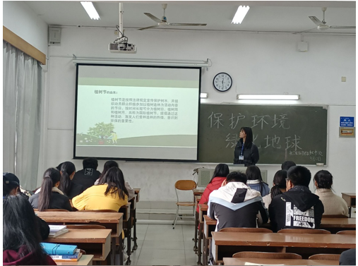 极踊跃回答植树节小问题. ,观看植树节拓展视频。同时,到场者一同高声朗读 《观种树》等古诗,加深爱护环境,保护地球的意识,全场气氛热烈积极。活动圆满结束后清扫教室,并合影留念。