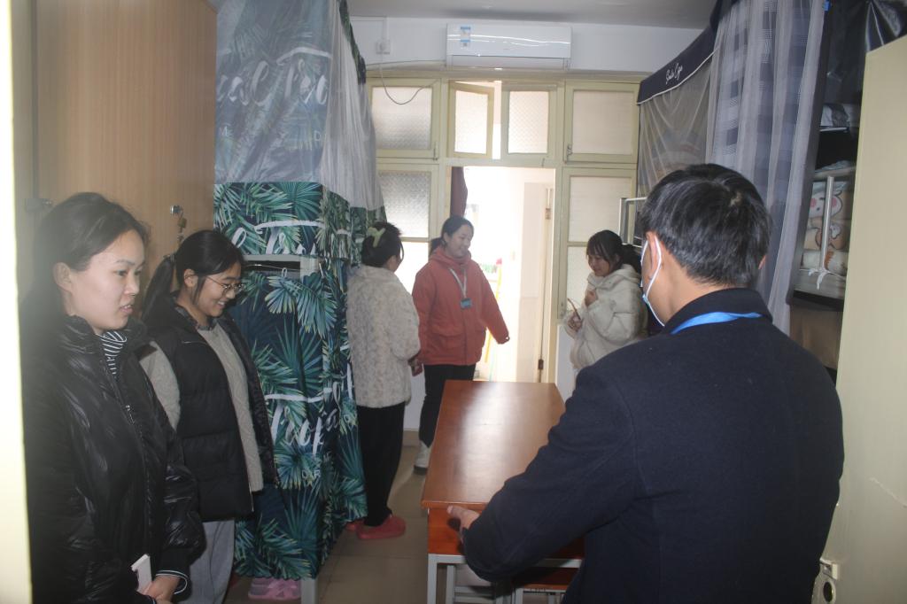 我院党总支周涛书记带领全体辅导员于12月30日携主要学生干部开展了文明寝室评比活动。
