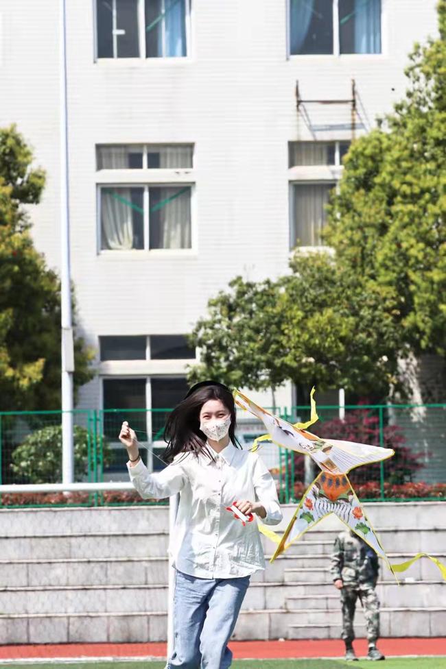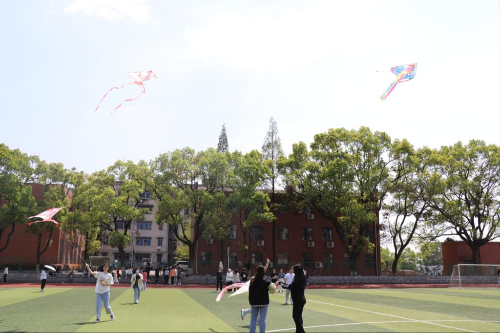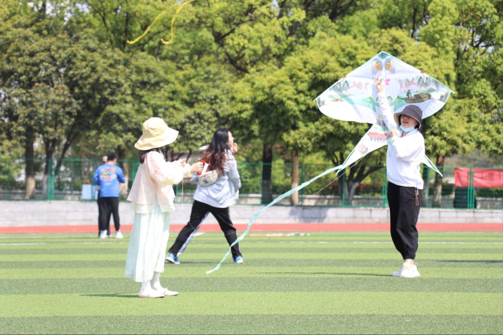 下午1点30分在宽阔平坦的操场上,人潮汹涌,气氛非常活跃,有的同学忙着搭支架,有的同学尽情的发挥自己的聪明才智,去为自己的风筝增色添彩,也有些同学在试飞的路上。在准备阶段结束后同学们开始正式放飞了自己的风筝,每四名同学分为一组,将风筝放飞,放线的同学在前猛跑,托风筝的同学在后紧随,在欢呼叫喊声中,一只只美丽的风筝纷纷飞上了蔚蓝的天空。就在太阳公公打盹儿的时候彩色风筝漫天飞舞,欢呼声此起彼伏。那样的风情,那样的韵味,那样的欢心,喜悦的欢笑无处不在。天高云淡万里无云,凉爽的春风轻轻吹拂着同学们的张张笑脸。