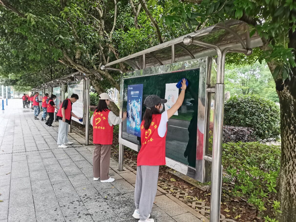 本次志愿服务的内容包括清洁校园内的宣传栏、路标、导航板,在志愿者们的认真清洁下,宣传栏、路标、导航板焕然一新,为校园增添了一丝清新。