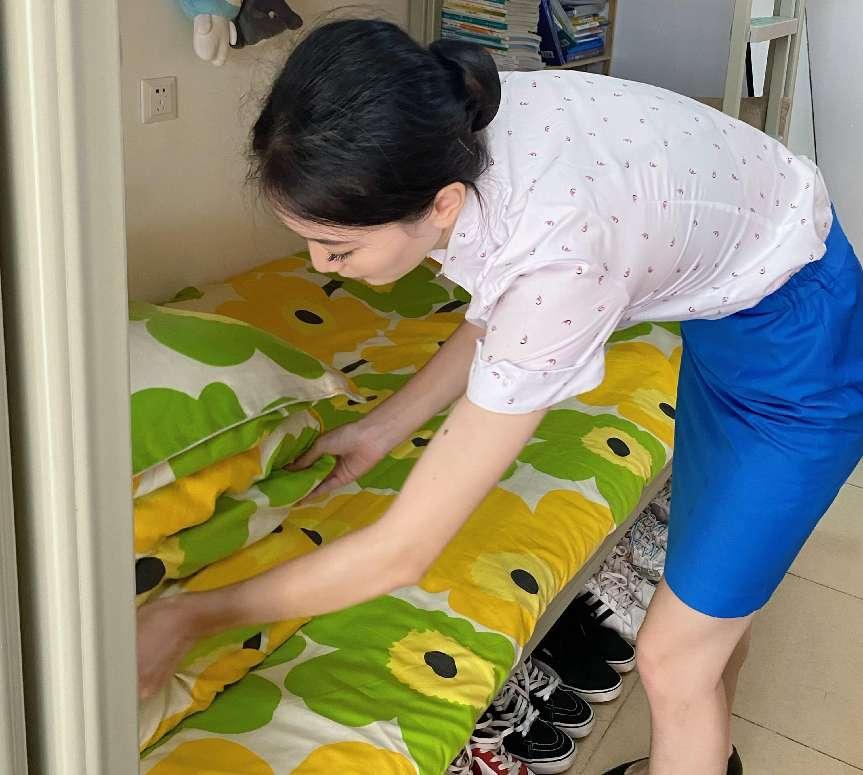 解决问题的根本在于发现问题。通过前期调查发现绝大部分寝室由于打扫卫生时间较短、同学们整理收纳能力不强,从而导致寝室存在较多卫生死角,卫生死角的异味以及寝室通风不到位造成异味过重,使得原本应该宽敞明亮的宿舍,却没有一个干净整洁的环境,严重影响了同学们的生活质量。同时,以空中乘务和机场运行专业为主,同学们个人物品较多,寝室物品摆放杂乱、整理困难等情况尤为突出。针对一系列疑难杂症,在统一内务整理规范中对部分寝室制定出合理的要求和规范,在确保内务干净,整洁的同时打造使用方便、清新宜居的学生公寓。