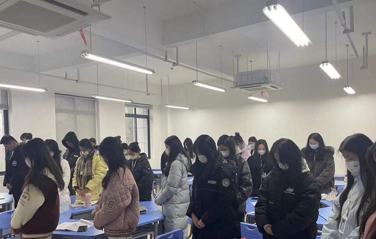 追悼大会默哀时,全体同学默哀三分钟,他们停下手中的一切活动来悼念这位我党我军我国各族人民公认的享有崇高威望的卓越领导人,缅怀江泽民同志的光辉业绩,颂扬江泽民同志的伟大情操和崇高品质。同学们静静肃立,追思之情绵绵不绝。