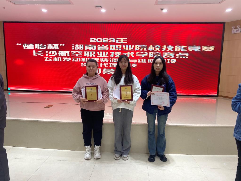 3月3日至4日,由湖南省教育厅、湖南省人力资源和社会保障厅联合主办,长沙航空职业技术学院承办的2023年度“楚怡杯”湖南省职业院校技能竞赛高职高专组“货运代理”赛项成功举办。大赛共有来自全省22所高职院校56名参赛选手同台竞技。经过两天激烈的角逐,我校赛手凭借扎实的知识功底、良好的职业素养脱颖而出,喜获佳绩。民航运输服务2102班黄康怡萱、民航安全技术管理2101班赵湘媛同学,分别斩获一等奖第一名与第四名,民航运输服务2101班李雨同学荣获三等奖。