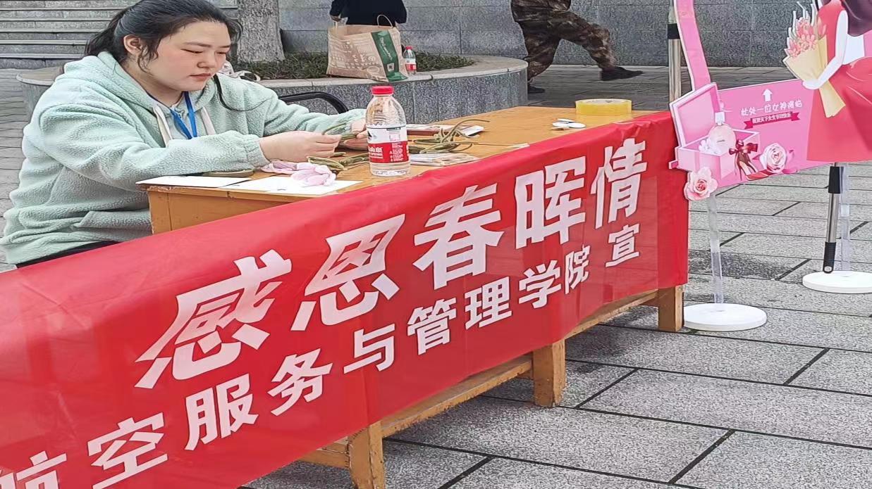 该活动在校内一食堂前坪展开,面向全校女教职工,大家齐聚一起,由社团部成员亲手制作的手工花,让生活有仪式感的开始,用一束编织花装点着我们对老师们的关心。