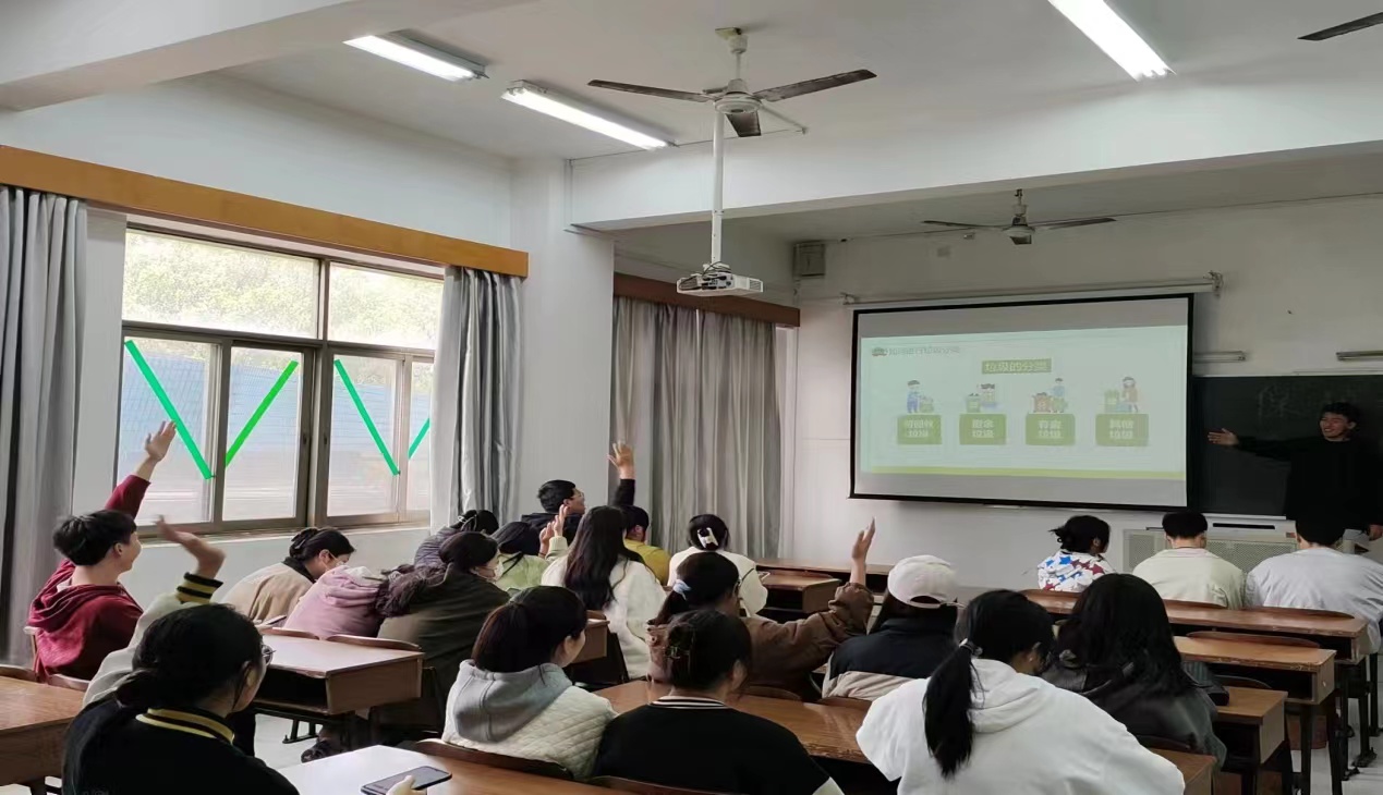 本次活动在二教205举办,beats365官网成员展示ppt并进行垃圾分类宣传,让同学们了解不同垃圾的分类,明白垃圾分类的重要性; 观看垃圾污染视频,让同学们明白保护环境的重要性以及必要性,并让同学们对于ppt和视频的学习,进行问答奖励。