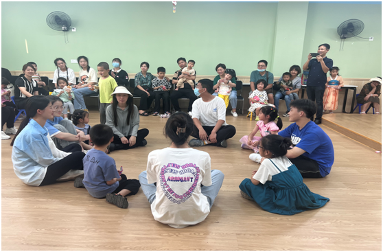 (志愿者与孩子们一起做游戏)