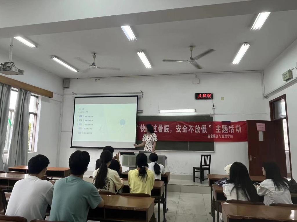 本次会议围绕“安全”这个话题循序渐进,首先围绕“交通安全”“用电安全”“消防安全”“食品安全”“防溺水”“防诈骗”等内容开展教育活动,并结合身边实际案例,就假期安全注意事项向大家作了详细的说明,随后围绕着“外出安全”和“居家安全”两个方面向大家普及了相关知识,并观看安全教育视频,进一步了解了假期安全的隐患,掌握了安全知识。大家纷纷表示,要从思想上高度重视,提高警惕,牢固树立“安全第一”的防范意识,科学规划假期,不断提升自我,安全、健康、愉快的度过假期!同时,主持人也对同学们的暑假安排也提出倡议,希望同学们以正面、积极的状态继续迎接接下来的大学学习生活,假期合理安排时间,认真完成暑假社会实践活动,坚持学习,并在假期期间多与父母交流,主动帮父母做一些力所能及的事情,为父母减轻负担,用实际行动回报父母,发扬中华民族的优秀传统美德。