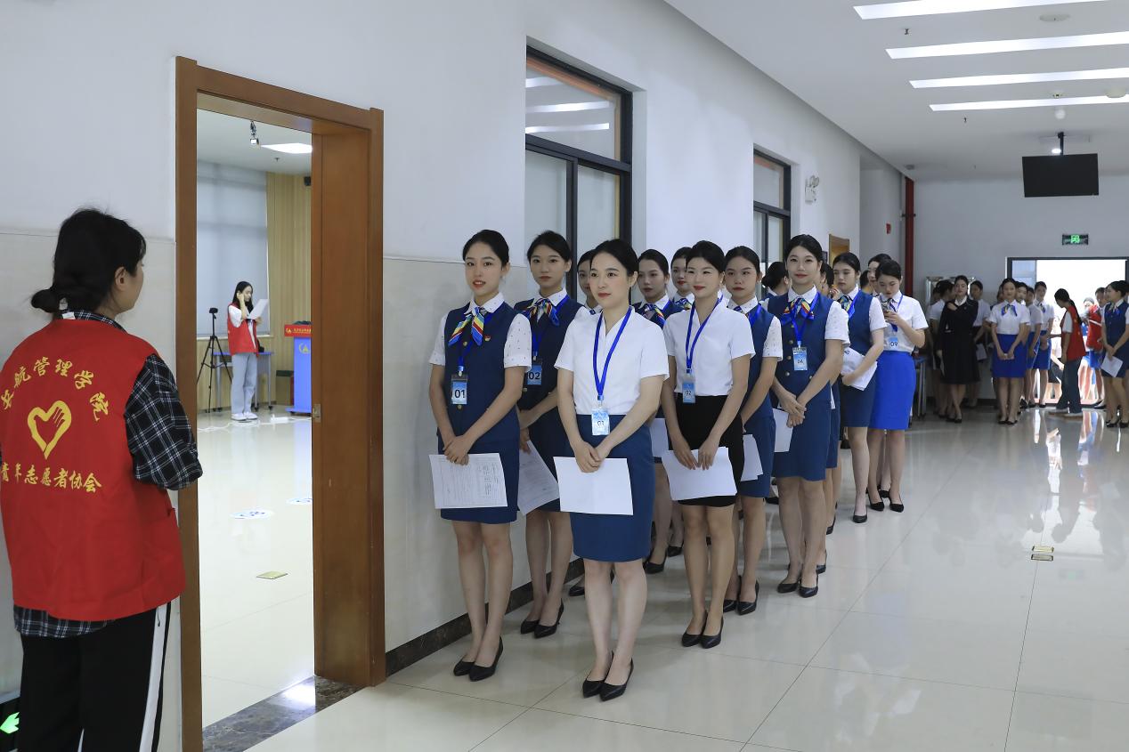 招聘会定在协同会议室候场,自修楼一楼106面试,主要招聘空中乘务员,此次面试主要面向beats365官网21、22级学生,此次招聘共吸引了包括我院及其他院校在校生、社招应聘者近400名应聘者参加。