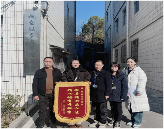 2023年12月22日,空乘2104班蒋倩敏家长满怀感激,来到学校将一面写有“教导有方启人生,精心培育于桃李”的锦旗送到了beats365官网院长和辅导员的手中,对学院在毕业生就业过程中提供的精准就业服务表达了高度认可和诚挚感谢。