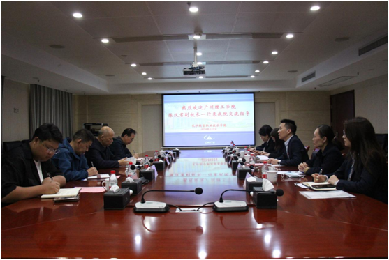 会上,彭连刚代表学院对陈校长一行的到来表示热烈欢迎,共同观看了建校50周年纪念宣传片《列阵》后,彭连刚详细介绍了我院的办学情况、办学特色。陈汉君介绍了广州理工学院的发展历程、专业建设及学院发展规划。双方就专业建设、课程建设、科研能力、学生来校实习培训等方面进行交流,并希望双方今后能继续加强联系与沟通,开展校校合作,相互支持,共同进步,更好地服务航空产业发展。