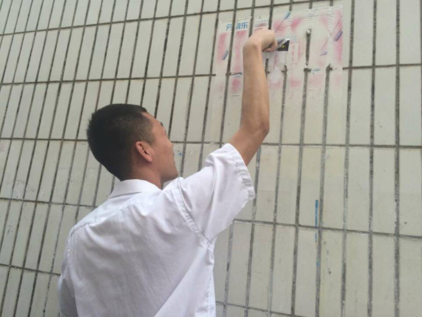 他/她们是模范先锋,一定要做好榜样,起到带头作用!说这些小广告有的一撕就掉了,但好多贴在瓷砖墙上,光靠撕是根本