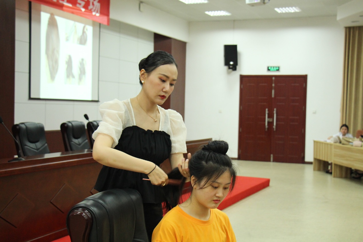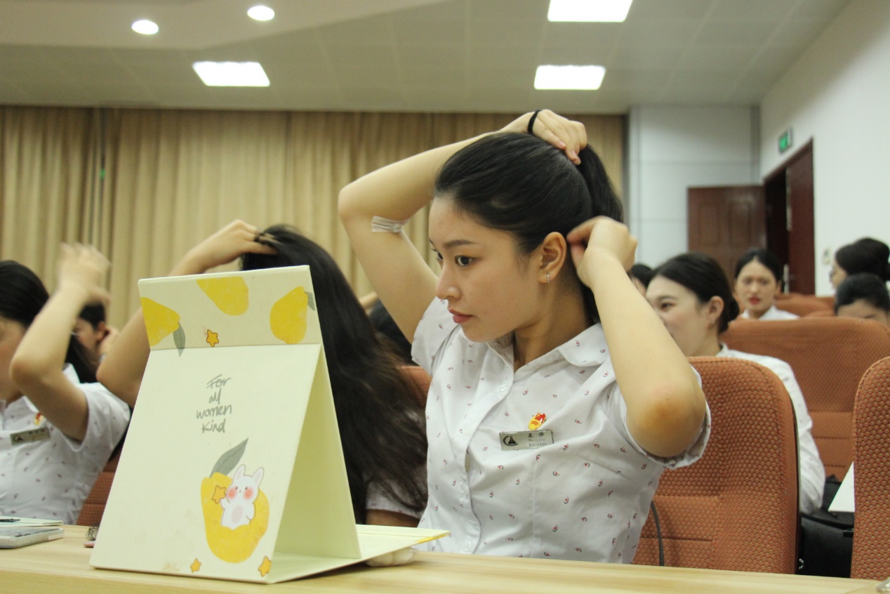会上就同学们着装、妆容问题、并结合上次校园招聘进行现场分析,现场问答,让同学们学会从自身找问题。苏老师指出许多同学们在上次面试的妆容表现时,诙谐风趣的语言逗得同学们捧腹大笑。随后,苏老师在现场开始进行妆容指导,一对一进行妆容分析,向同学们分享自己的面试妆容技巧,将多年实战经验倾囊相授,只为让同学们摆脱后顾之忧,以最好的状态奔赴“战场”。