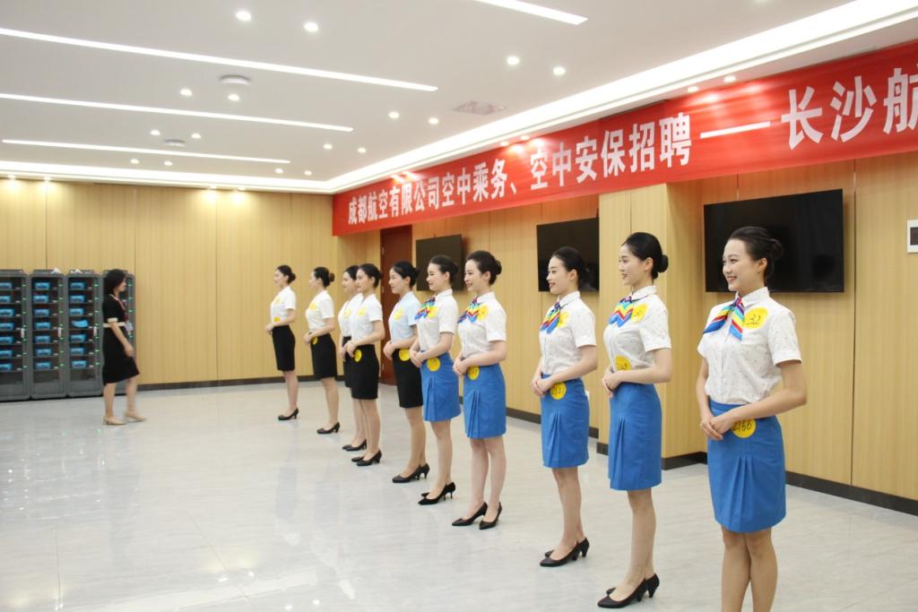 2022年6月7日,备受期待的成都航空有限公司空中乘务、空中安保专场招聘会在我院如期举行。beats365官网吴巧阳院长、党总支周涛书记陪同现场并指导工作。湖南女子大学29名空乘专业学生来我院参加面试,本次招聘会共计337名学生参加。