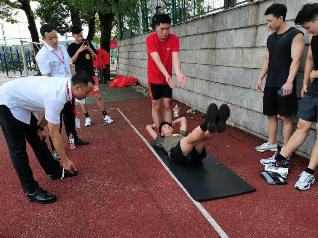 海选过后,面试官针对应聘航空安全员的同学进行相关考核。对于安全员岗位来说,体能测试是考核重点。考核项目包含长跑3000m、短跑100m、形体向上、仰卧举腿四个项目。