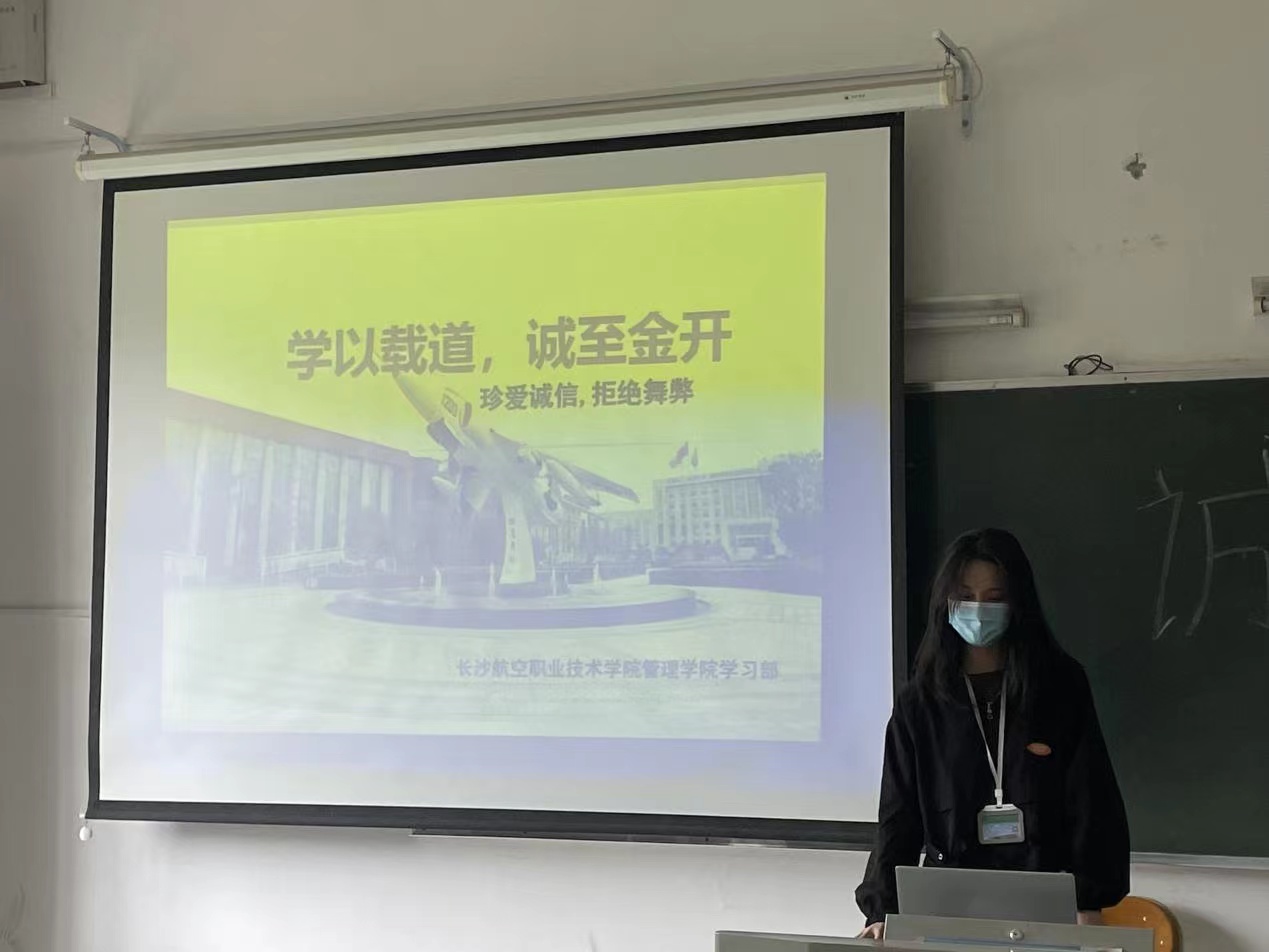活动伊始,主持人为大家介绍了诚信考试的意义和目的,强调了严肃考风考纪、学校规范考试的各项制度以及考试诚信等问题,告诫同学们要严肃对待考试,透明考试、诚信做人。再通过考试作弊而被处分的真实案例告诫同学们要树立诚信考试的态度,杜绝舞弊考试现象。并向同学们复述了学校学生手册中有关考试作弊的处理办法,使同学们深刻认识到了学院对于学生诚信意识培养、“诚信应考”的重视及对作弊现象的坚决打击。活动最后,学习部部长曹墨总结发言,她表示活动只是载体,真正的目的在于号召大家脚踏实地,做一个诚实守信的新时代青年大学生。