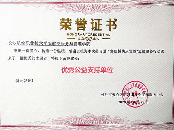 空乘专业教师组织应急救护队每月定期为学院周边居民组织应急救护培训班10期,累计培训社区居民和基层服务人员超804人次。派出683人次的志愿者参加第二十一届中国中部(湖南)农业博览会、高铁南站志愿服务及看望敬老院的孤独老人等活动达37次。8名同学组队代表雨花区红十字会参加第五届长沙市红十字应急救护大赛获三等奖;《青年强,则国家强!》参加雨花区微视频大赛获“美好七十年•雨花幸福‘视’”短视频大赛一等奖。